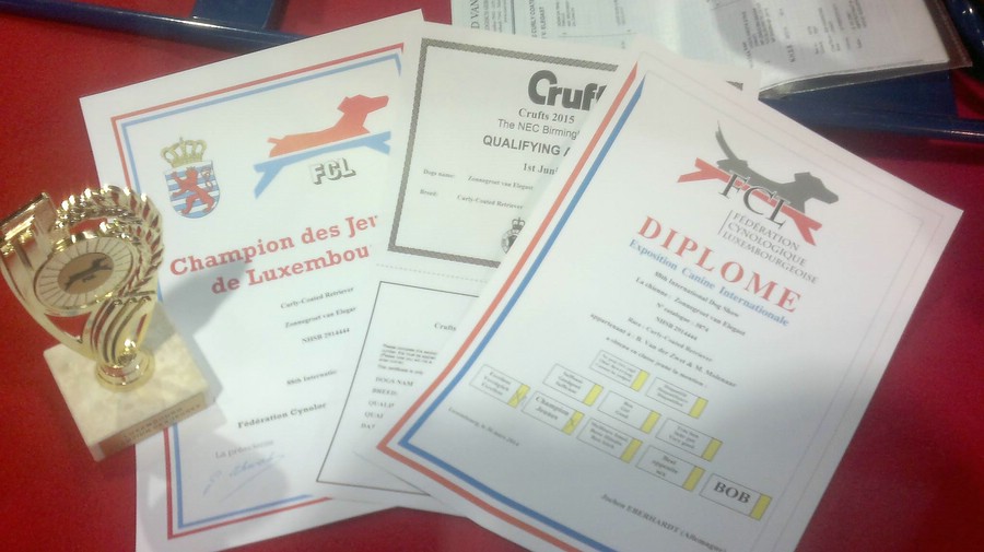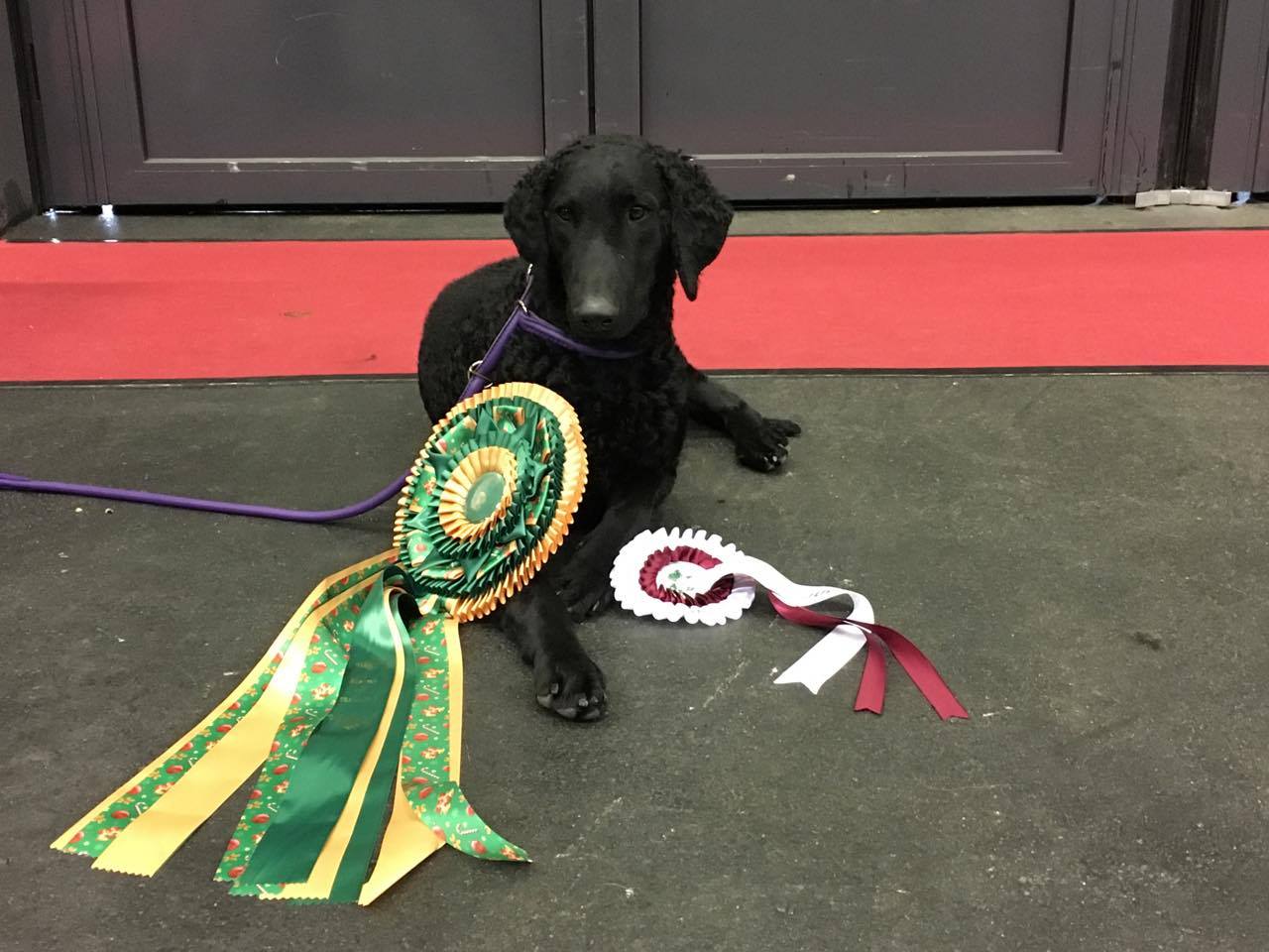 Was für ein schöner Jahresanfang! im Neuen Jahr wurde Zonnegroet van Elegast "Ibine" in Hoogstraten ( Belgien ) am 04.01.2014 "Beste Hündin" und "Best of Breed" von 7 gemeldeten Curlies! Was für ein schöner Jahresabschluß! Codys Tochter Zonnegroet van Elegast "Ibine" wurde auf der Weihnachtsausstellung in Cuijk ( Niederlande ) am 21.12.2013 mit 9 Monaten "Beste Hündin" und "Best of Breed" Herzlichen Glückwunsch an Mieke und Brenda!!! |